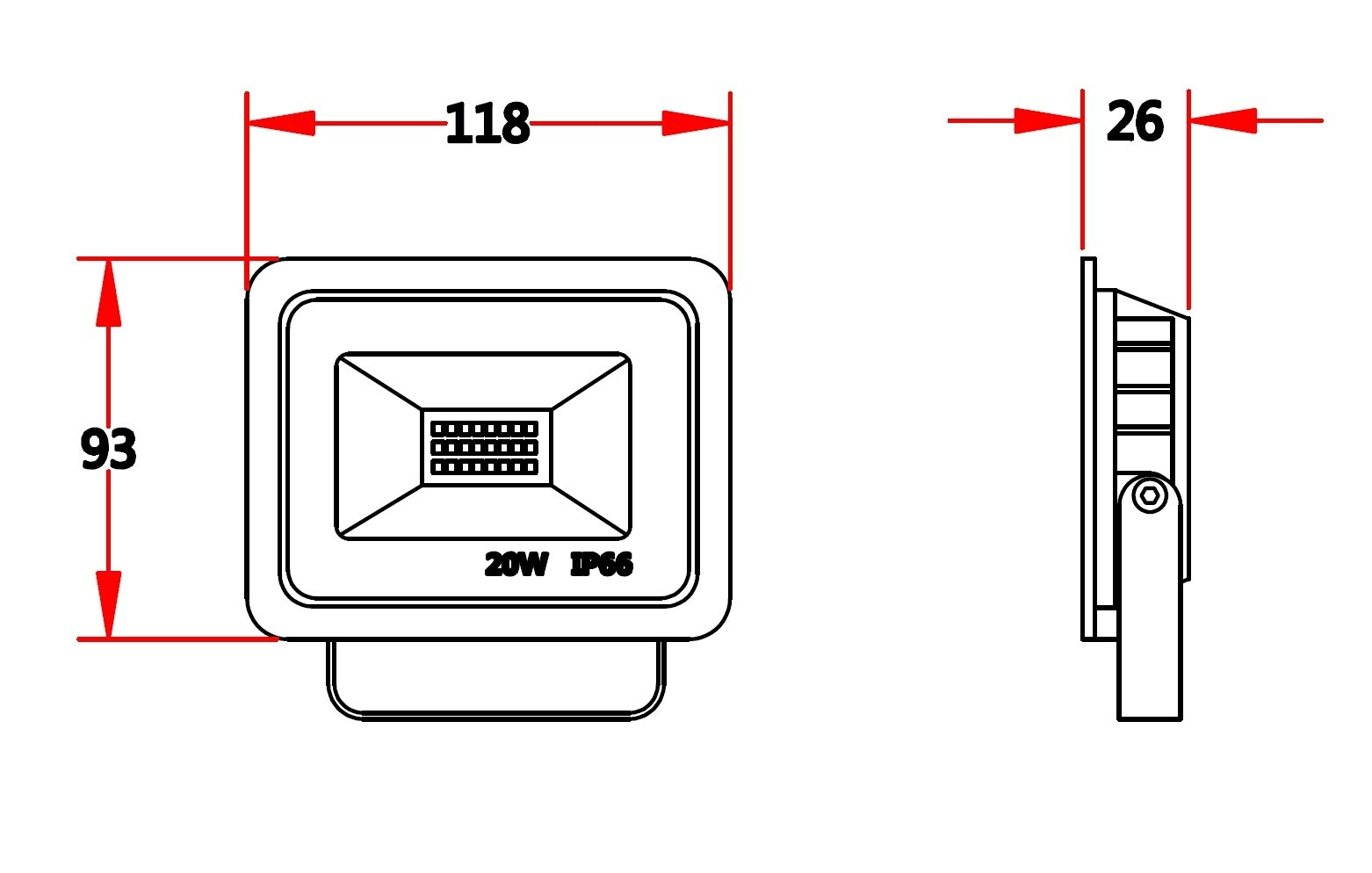 De compacte afmetingen (118 x 93 x 26 mm) zorgen ervoor dat de lamp discreet op elke wand past. Verder beschikt de breedstraler over een verstelbare beugel. Met deze beugel richt u de lichtstraal exact op de gewenste plek. De lamp werkt direct op het lichtnet (200-240V), wat de installatie aanzienlijk versnelt. Kortom, deze 20W breedstraler biedt een krachtige, duurzame en sfeervolle oplossing voor al uw verlichtingsprojecten.