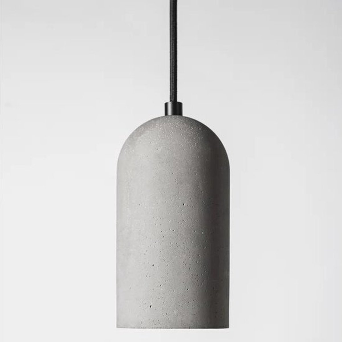 De kern van deze pendel is de prachtig vormgegeven fitting van echt grijs beton. Dit natuurlijke materiaal geeft de lamp een karakteristieke, strakke uitstraling die direct in het oog springt. Om het contrast te versterken, is de pendel voorzien van een volledig zwart strijkijzersnoer en een bijpassende zwarte metalen plafondkap. Deze combinatie zorgt voor een stoer en samenhangend geheel dat rust en stijl uitstraalt.