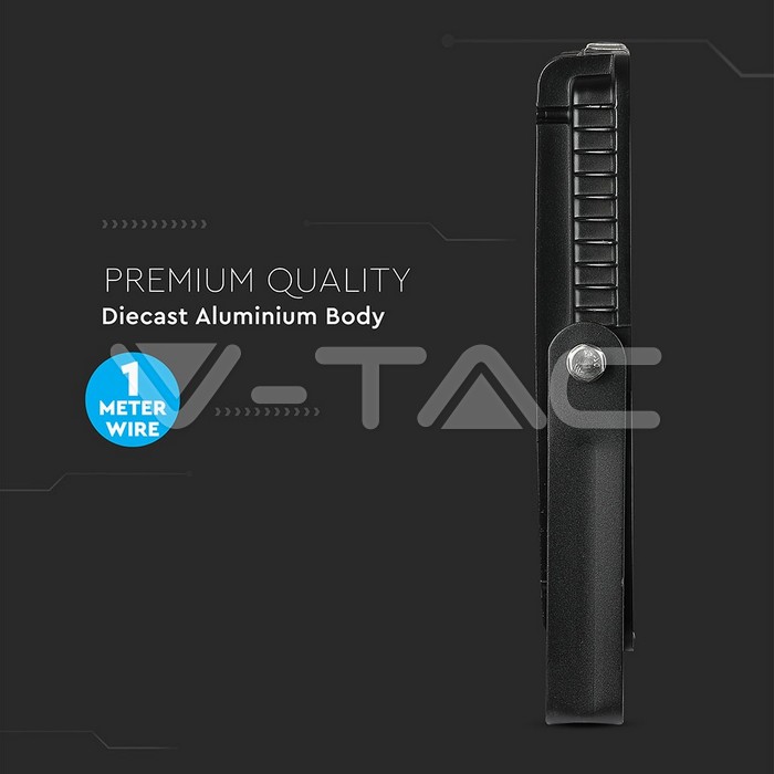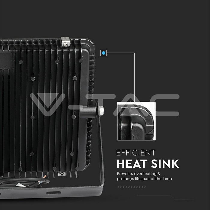 V-TAC vervaardigt de behuizing uit premium gegoten aluminium, wat de lamp een uitstekende warmteafvoer geeft. Dit proces beschermt de interne componenten en garandeert een lange levensduur van 30.000 branduren. Bovendien beschikt de lamp over een met siliconenrubber afgedichte glasplaat. Deze constructie zorgt voor een superieure water- en luchtdichte afsluiting. Hierdoor presteert de breedstraler optimaal onder alle weersomstandigheden, terwijl de corrosiebestendige laag de zwarte behuizing jarenlang mooi houdt.